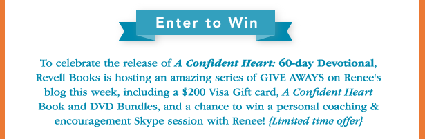 Today’s Giveaway! Leave a comment today sharing why you’d like to win a NEW Confident Heart Devotional book for you and a friend! Simply click “share your thoughts” below. You’ll be entered to win 2 devotional books, plus my new Book and DVD bundle! Entry with Purchase When you purchase “A Confident Heart Devotional” book you will be entered into our series of giveaways that include more books, DVDs, a Skype encouragement andcoaching session with me and the grand prize $200 Visa Gift Card. {EMAIL your receipt to –> [email protected]
